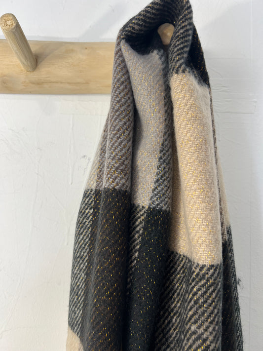 Cachecol xadrez preto/ castanho