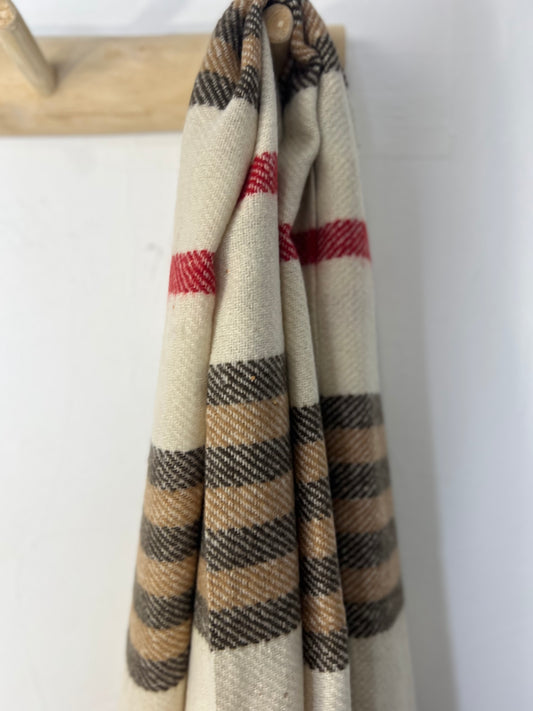 Encharpe riscas beje/vermelho