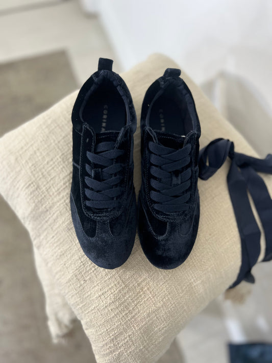 Ténis Corina veludo azul-escuro