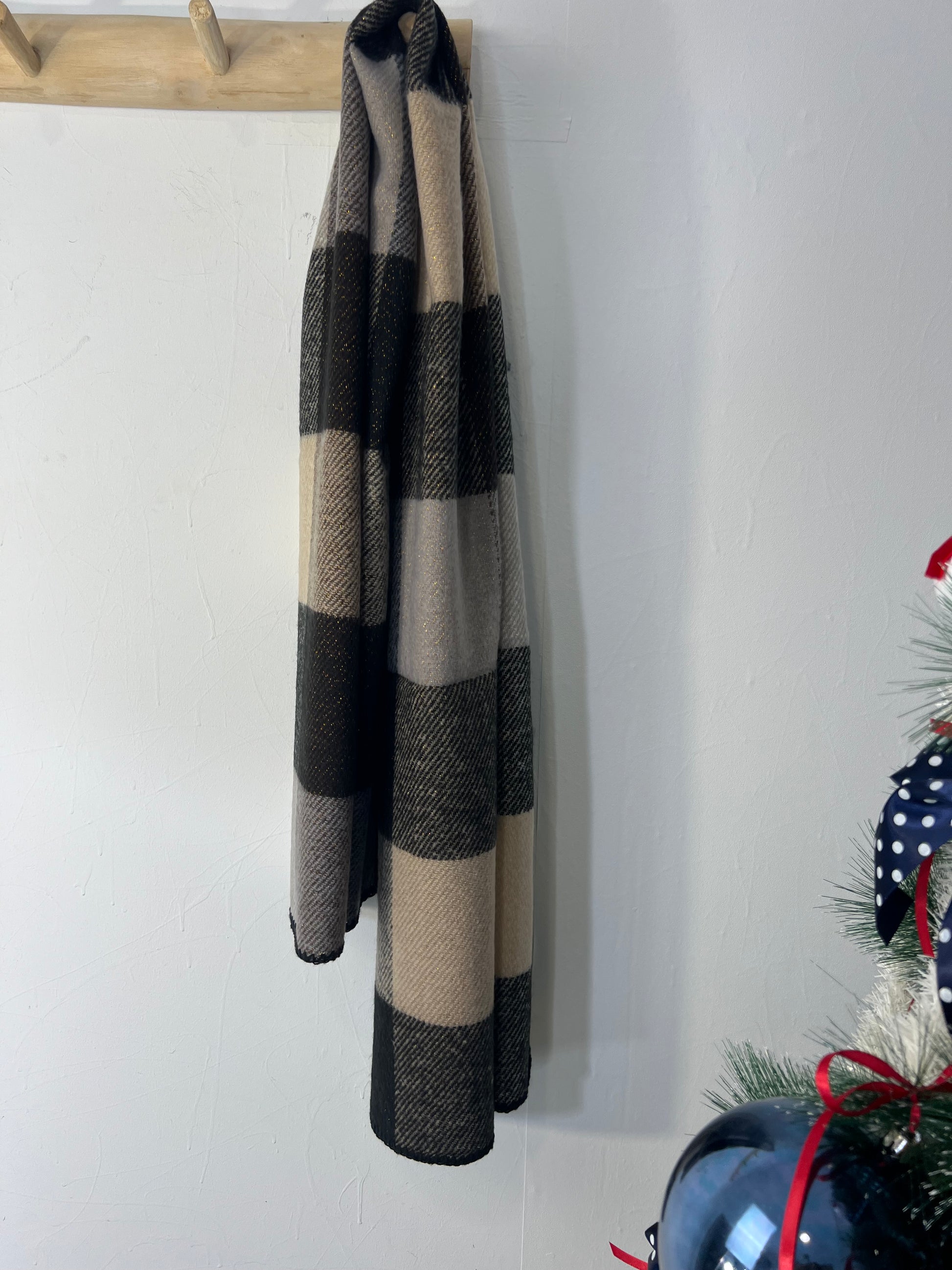 Cachecol xadrez preto e beje