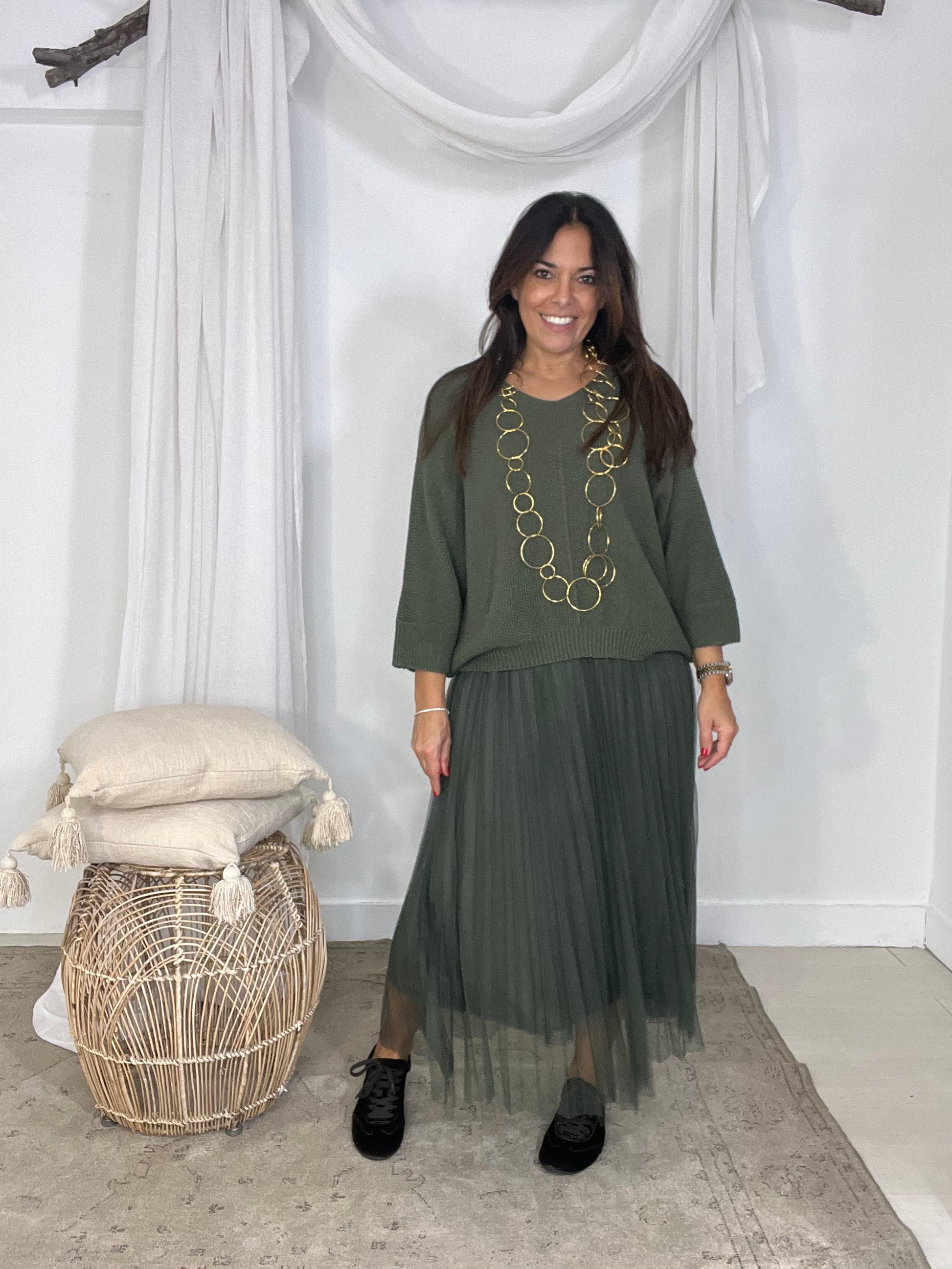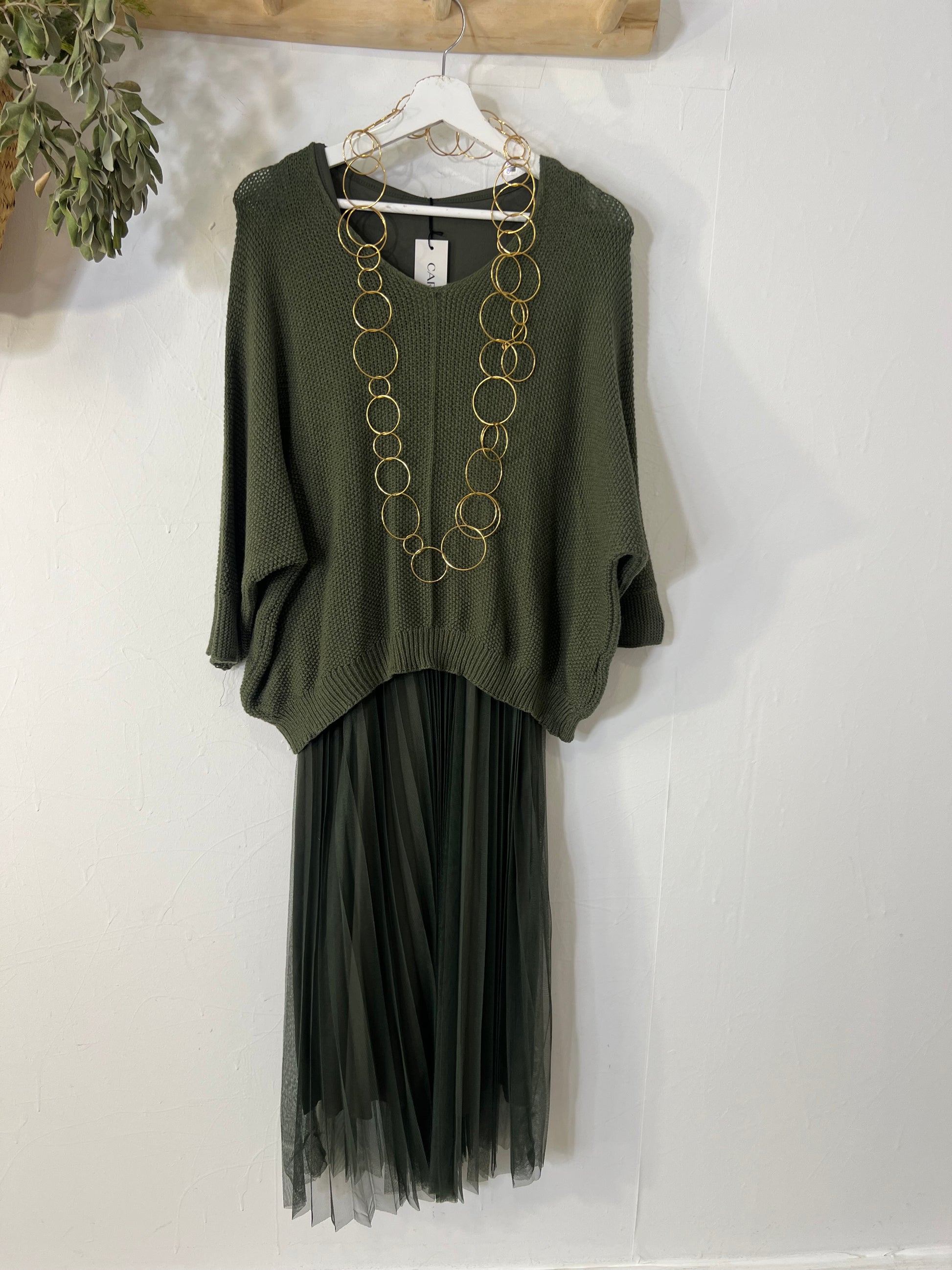 Vestido Flores kaki